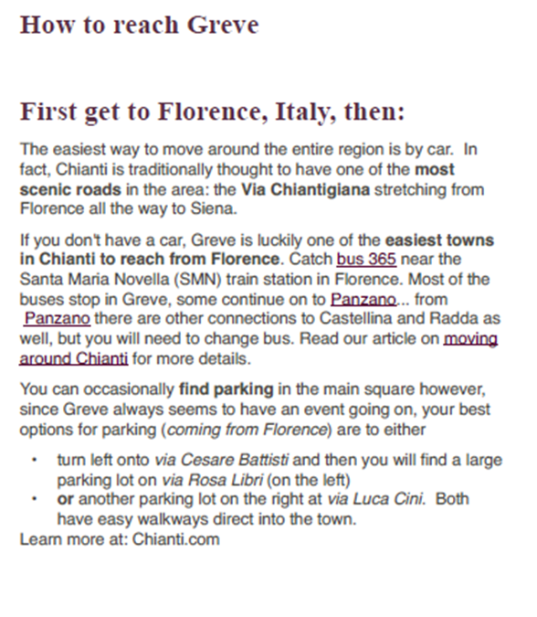 Some Guidance on How to Reach Greve-in-Chainti